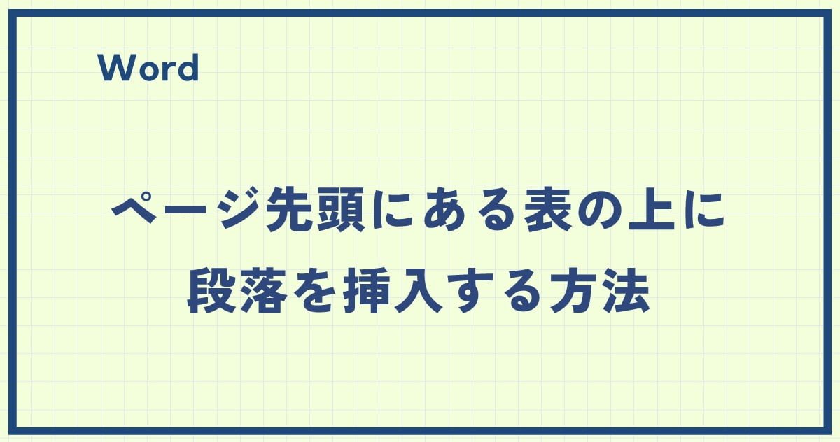 Wordでページの先頭にある表の上に段落を挿入しようとして困ったことはありませんか? 実は、簡単にページ先頭にある表の上に段落を追加することができます。 記事内容 今回は、Wordでページ先頭にある表 ...