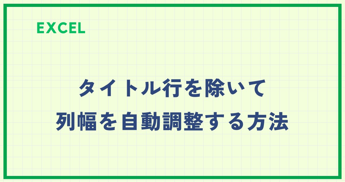 Excelで表を作成する際、列全体を選択して列幅を自動調整するとタイトルがある列だけ幅が広くなってしまうことがあります。 そのような場合、タイトル行を除いて列幅を自動調整したいですよね。 記事内容 今 ...