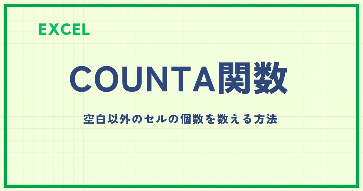 ExcelのCOUNTA関数は、セル範囲内の空白以外のセルの数を数える関数です。 COUNTA関数は数値やテキストなど、どんな種類のデータであっても、空白以外であればカウントします。 この関数を活用す ...