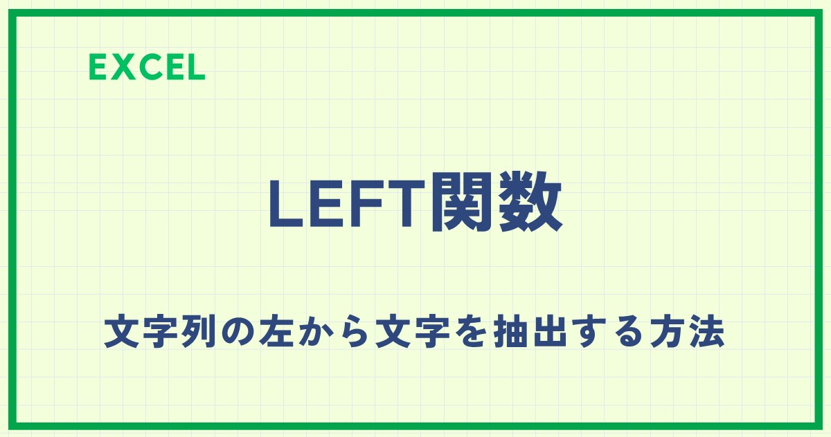 Excelで文字列から特定の部分を抽出する必要があるとき、LEFT関数は便利な関数です。 この関数を使えば、指定した文字数だけ、文字列の左側から簡単に取り出すことができます。 例えば、"Excel"と ...