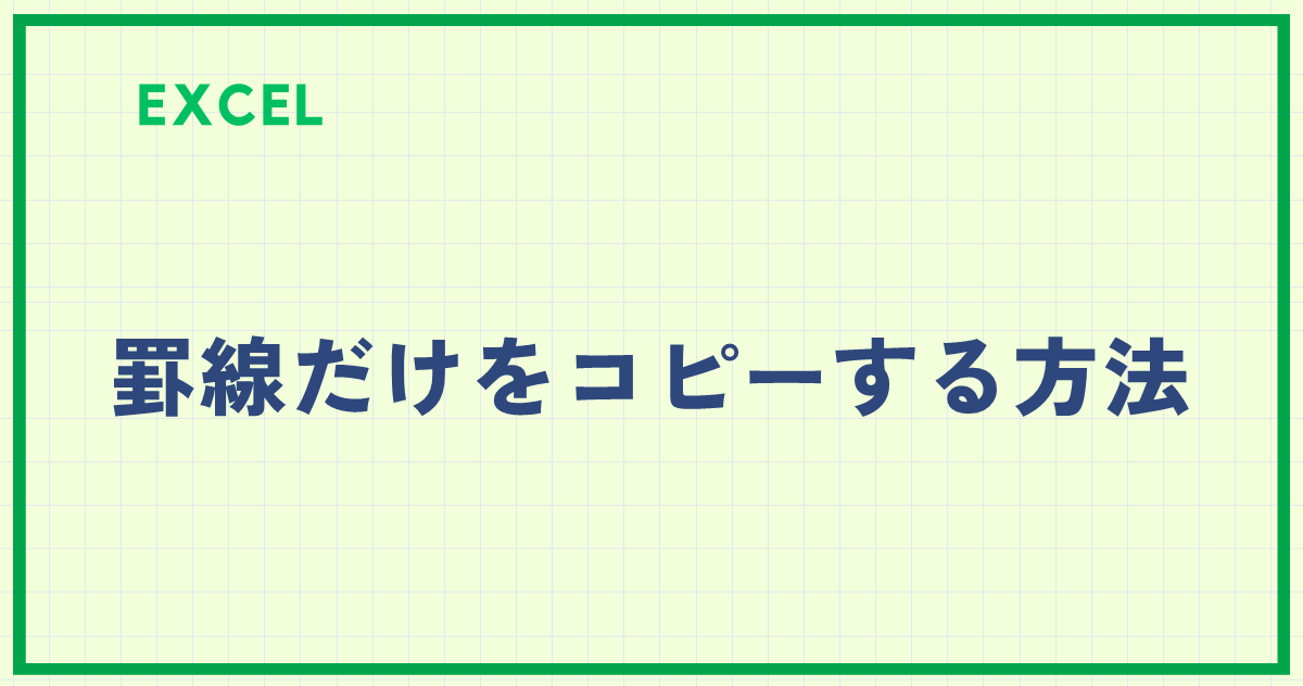 Excelで作成した表をコピーする際に、値や数式は不要で、罫線だけをコピーしたいことがあると思います。