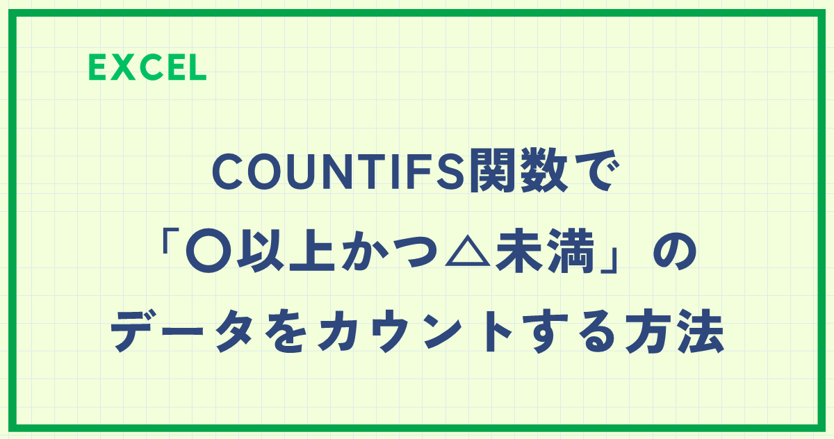 ExcelのCOUNTIFS関数で「〇以上かつ△未満」という条件を設定する方法がわかります。