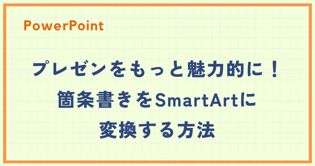 今回は、PowerPointで箇条書きをSmartArtに変換する方法を紹介します。